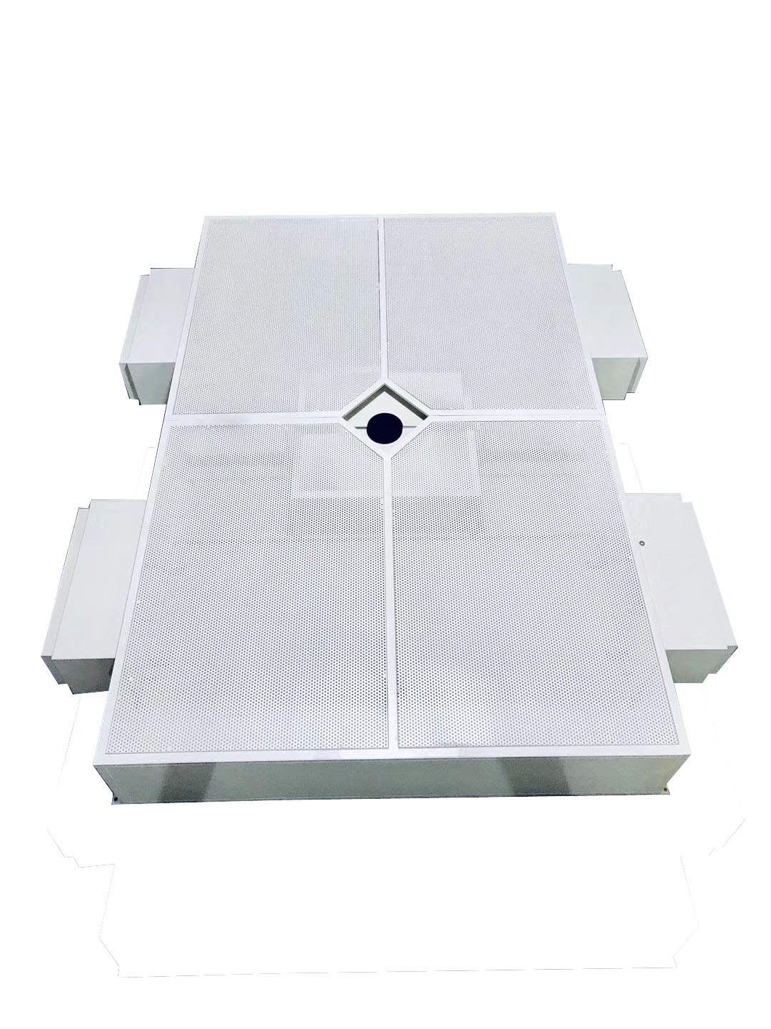 D 均流模式:多塊網(wǎng)孔板組合,出風(fēng)均韻,靜電粉末噴涂,和墻頂面同色,表面效果好;