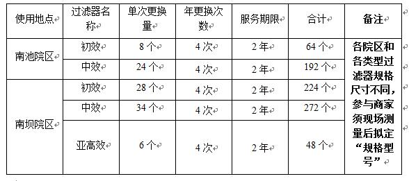 根據(jù)醫(yī)院業(yè)務(wù)發(fā)展需要,我院南池院區(qū)、南壩院區(qū)手術(shù)室空氣凈化機(jī)組擬采購初效、中效、亞高效過濾器,現(xiàn)公開邀請(qǐng)合格商家參與,內(nèi)容如下: